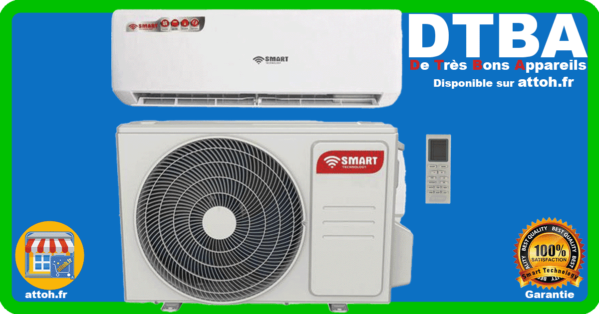 SMART TECHNOLOGY, Climatiseur, Split, Inverter, 1.5 CV, 12000 BTU, R410, Purificateur, Filtre 3 Care, Économie d’énergie, Refroidissement rapide, Anti-Corrosion.