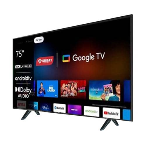 TV 75 pouces, Google TV, SMART TECHNOLOGY, Mini LED, 8K UHD, Android TV, Télécommande vocale, Bluetooth, Wi-Fi, HDMI, STT-7599SKM, écran géant, smart TV connectée, TV salon, image ultra nette, décodeur intégré