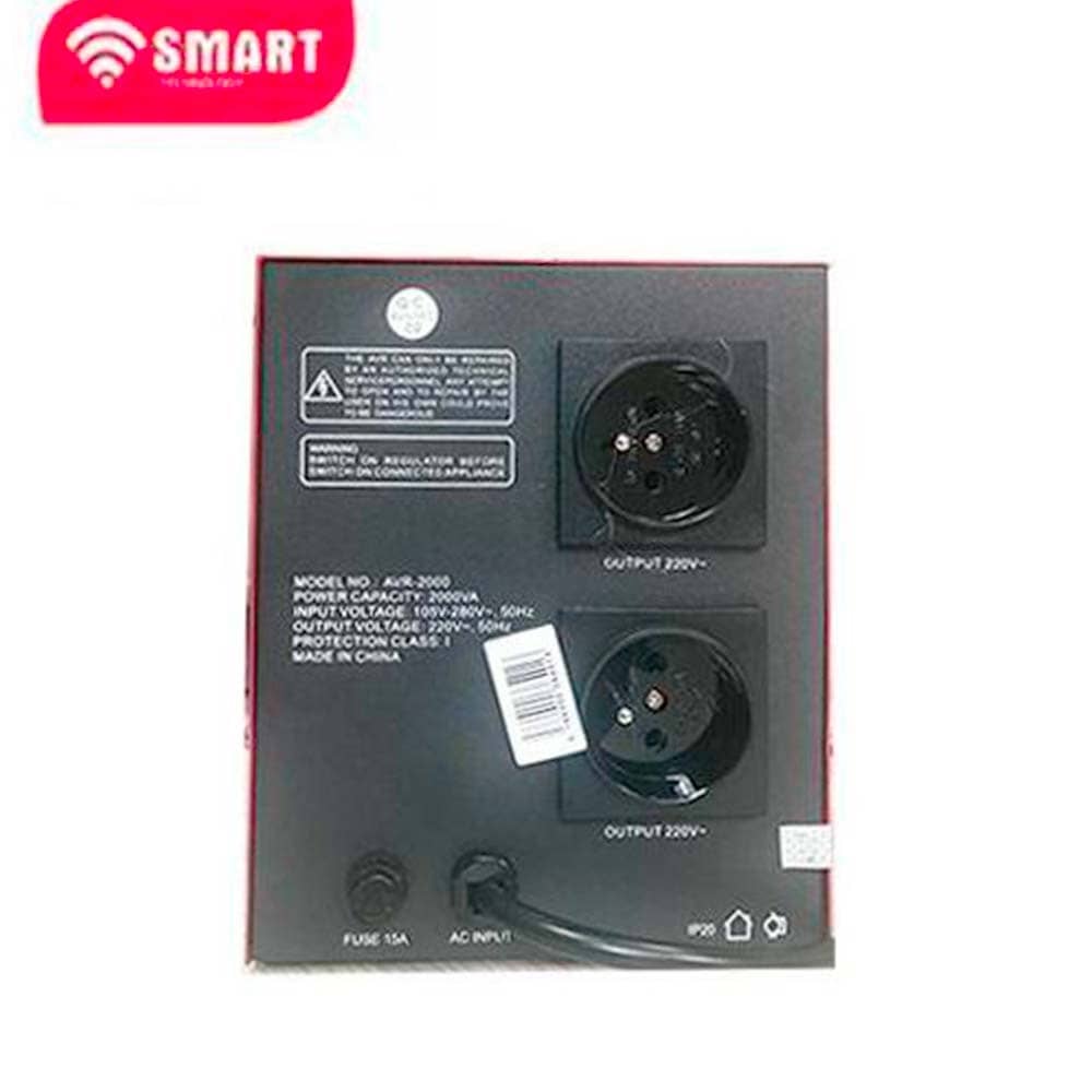 🔌 Stabilisateur Automatique 2000 VA – SMART TECHNOLOGY AVR-2000VA – Rouge – Affichage Digital – Garantie 7 Mois